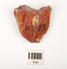 | Description / विवरण | Stone flake with striking platform on one side, unmodified flake. |