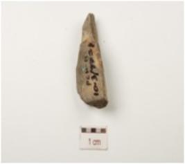 | Description / विवरण | A chert end struck flake with double ridge on surface and prepared platform. |