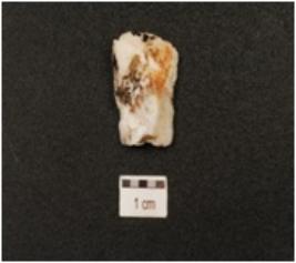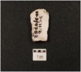 | Description / विवरण | A chert flake with flake scars on surface and triangular cross section. |