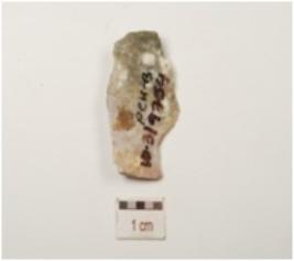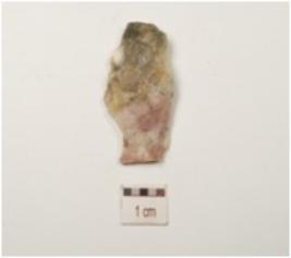 | Description / विवरण | A chert end struck utilized flake with single ridge on dorsal, prepared platform, bulb on ventral and use wear marks on edges. |