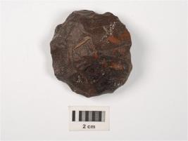 | Description / विवरण | A side scraper made on stone with irregular retouches on edges, flake scars on dorsal, prepared platform and cortex visible on distal end. |