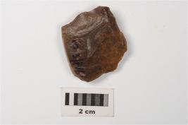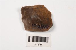 | Description / विवरण | A side scraper made on chert stone with flake scars on dorsal, partly chipped off and diffused bulb on ventral. |