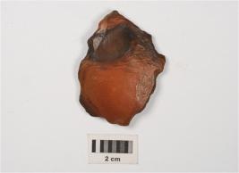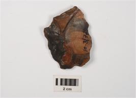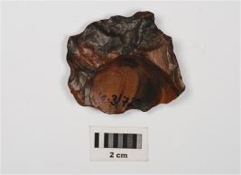 | Description / विवरण | A end scraper made on chert stone with use wear marks on working edge, flake scars on dorsal and smooth ventral. |