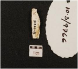 | Description / विवरण | A chert blade with double ridge on surface and trapezoid in cross section. |