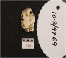 | Description / विवरण | A chert flake with single ridge on surface and triangular cross section. |
