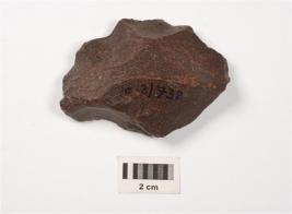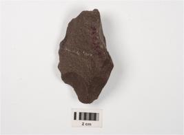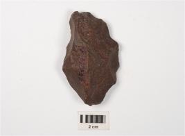 | Description / विवरण | A side scraper made on basalt stone with flake scars on dorsal and ventral, Irregular retouches on working edge. |