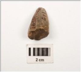 | Description / विवरण | A core made on chert conical in shape, seven flaks scars on surface, smooth surface. |