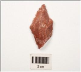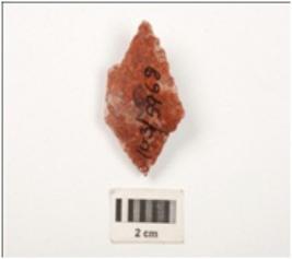 | Description / विवरण | A scraper made on chert with ridge on dorsal side, use wear marks on cutting edges, smooth and flat ventral surface. |