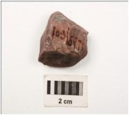 | Description / विवरण | A core made on chert, conical in shape, prepared platform and five blade scars on surface. |