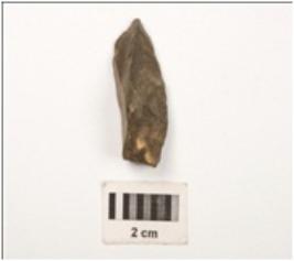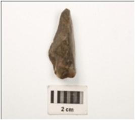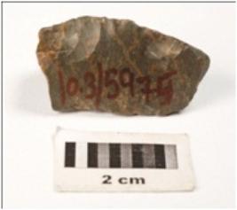 | Description / विवरण | A flake made on chert, flaks scars on dorsal side, use wear marks on cutting edges, conical in shape, smooth vantral surface. |