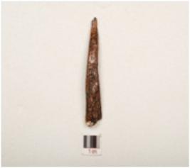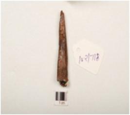 | Description / विवरण | A fragment of iron nail, rusted surface and chemically treated one end is pointed and other end is broad, rectangular in section. |