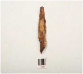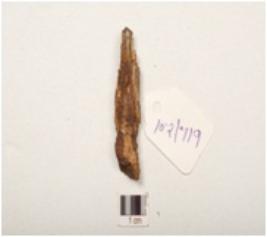 | Description / विवरण | A fragment of a iron nail rusted surface and chemically treated one end is pointed and other end is broad. |