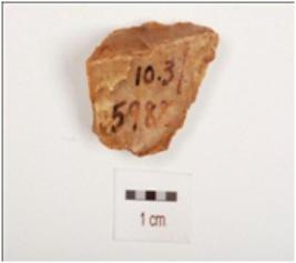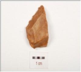 | Description / विवरण | Chert scarper on core, prepared platform, six blade scars with ripple marks on surface, retouches on cutting edge and brown in colour. |