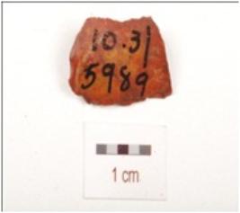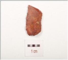 | Description / विवरण | Fragment of a parallel sided chert blade with a mid ridge on dorsal side, diffused bulb on ventral side, broken along at distal end, triangular in section and irregular retouched on cutting edges. |