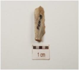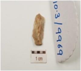 | Description / विवरण | A blade, made on end struck chert, ridge on the dorsal side and retouched cutting edges. |