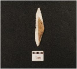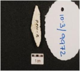 | Description / विवरण | A blade made on chert, ridge on the dorsal side and retouched cutting edge. |