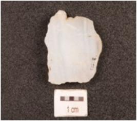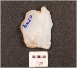 | Description / विवरण | A flake made of chalcedony, flake scars on dorsal side, diffused bulb on ventral side, irregular in shape, irregular retouch marks on edges. |