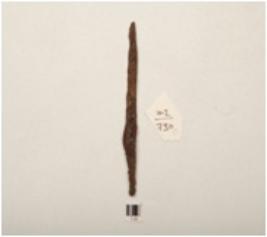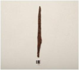 | Description / विवरण | An iron nail pointed lend and head broken rough surface unpolished, irregular square cross section. |