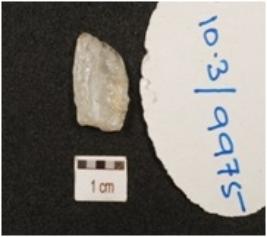 | Description / विवरण | A flake made on quartz, retouched cutting edges. |