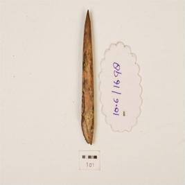 | Description / विवरण | A fragment of bone point, circular in section, one end pointed another end broken, chisel and polished surface. |