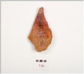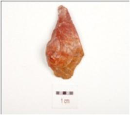 | Description / विवरण | Chert end scraper on side struck flake, negative bulb with ripple marks on ventral side, positive bulb on ventral side, striking platform and use wear marks on working edge. |