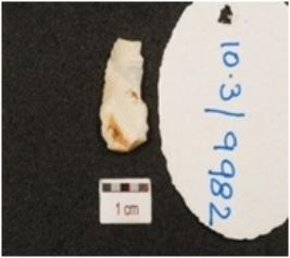 | Description / विवरण | A blade made on chalcedony, prominent bulb on the ventral side and retouched cutting edges, |
