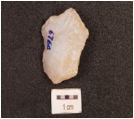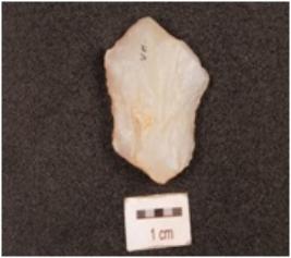 | Description / विवरण | A flake made on chalcedony, flake scars on dorsal side, diffused bulb on ventral side, use wear marks on edges. |