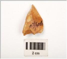 | Description / विवरण | An chert core with three blade scars, prepared platform, irregular retouch along cutting edges. |