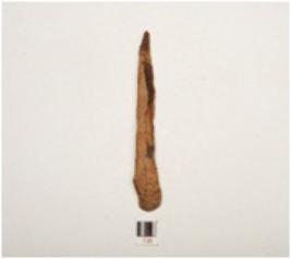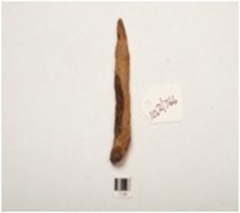 | Description / विवरण | A nail made on iron elongated body flat broad at top end, pointed towards other end, rusted surface, rectangular in section. |