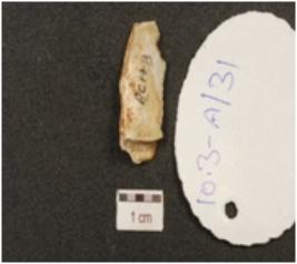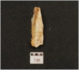 | Description / विवरण | An end struck flake made on chert, flake scars on dorsal side and bulb on the ventral side. |