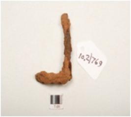 | Description / विवरण | A nail made on iron, slightly bend, broken at both ends, rusted surface, rectangular in section. |