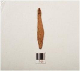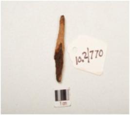 | Description / विवरण | A arrow head made on iron with shaft, slightly broken at top end, intact other end, rusted surface, triangular in section. |