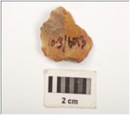 | Description / विवरण | A side scraper made on chert flake, prepared platform on proximal end, use wear mark along cutting edges. |