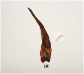 | Description / विवरण | A fragment of sickle made on iron, broad blade at one end, pointed shaft at other end, curve body rusted surface, rectangular in section. |