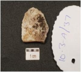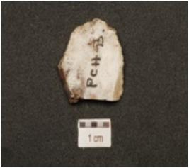 | Description / विवरण | An utilized flake made on chert, prepared platform on proximal end and use wear marks on working edges. |