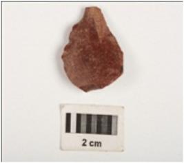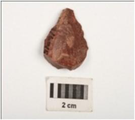 | Description / विवरण | A side scraper made on chert flake, prepared platform, diffused bulb on ventral side, irregular retouch edges, red in colour. |
