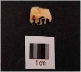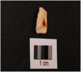 | Description / विवरण | Fragment of a blade made on chert with a mid-ridge on the dorsal surface, parallel cutting edges, triangular in section. |