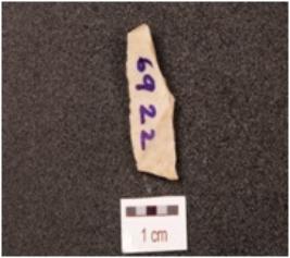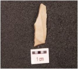 | Description / विवरण | Fragment of an utilized flake made on chert, bulb and platform absent, blade scars on dorsal side, use-wear marks along sharp edge. |