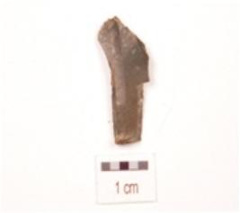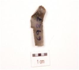 | Description / विवरण | An utilized flake made on an end struck chert flake, prepared platform, prominent bulb on ventral side, two blade scars on dorsal side. |