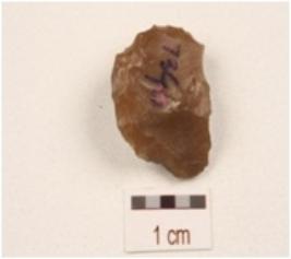 | Description / विवरण | A scraper made on end struck chert flake, prepared platform on proximal end, partly retouch cutting edges, flake scars on dorsal as well as ventral side and bulb on ventral side. |