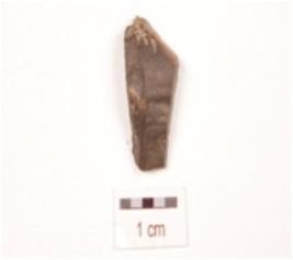 | Description / विवरण | Fragment of an utilized flake, bulb and platform absent, three blade scars on dorsal side, use-wear marks along sharp edges. |