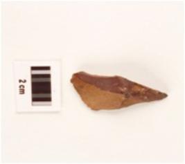 | Description / विवरण | A side scraper made on chert, used wear marks on working edges, cortex is partly intact, flake-scars on surface. |