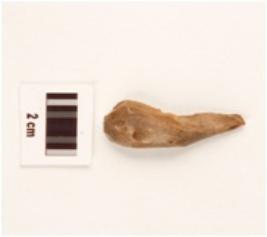 | Description / विवरण | A scraper made on chert, used wear marks on working edges, flake scars on surface, diffused bulb on ventral side. |