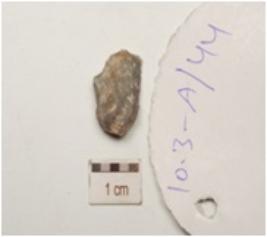 | Description / विवरण | A chert end struck flake, bulb on ventral side and blade scars on dorsal side. |