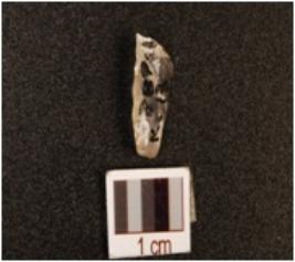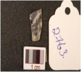| Description / विवरण | Broken blade with two working edges, middle ridge, positive bulb visible on ventral side near the striking platform proximal end. |