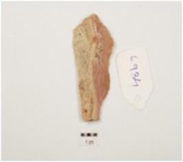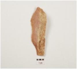 | Description / विवरण | A blade made of chert end struck flake, one mid ridge on the dorsal surface, sharp and blunted both edges. |