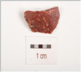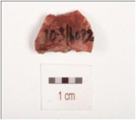 | Description / विवरण | Fragment of side scraper made on chert flake, use wear mark along cutting edges. |