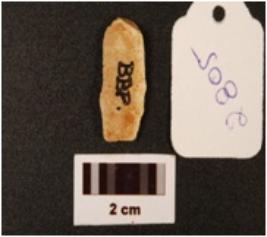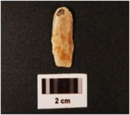 | Description / विवरण | Blade with a striking platform at proximal end a positive bulb on proximal and ventral side, blade scars on dorsal side flakings also visible on surface. |
