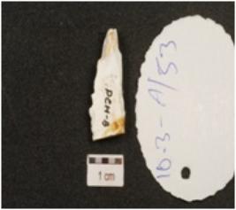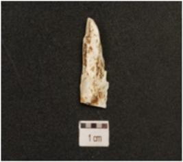 | Description / विवरण | An chert blade, prepared platform on proximal end, mid ridge on dorsal and use wear marks on cutting edge. |
