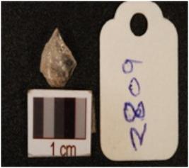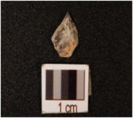 | Description / विवरण | Micro burine with a pointed end and a ridge supporting other end broad and flat small chippings visible on surface. |